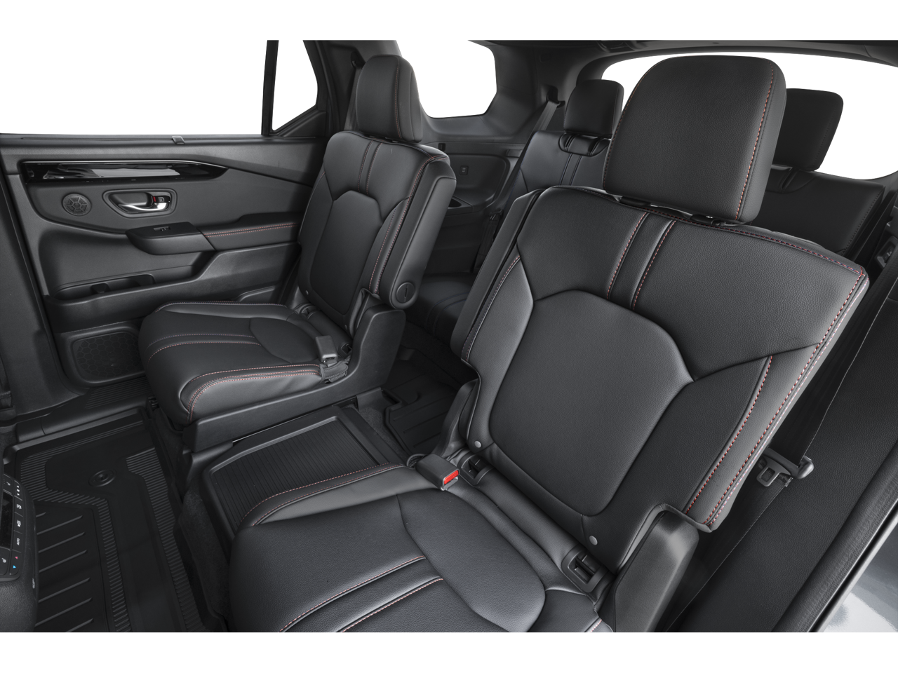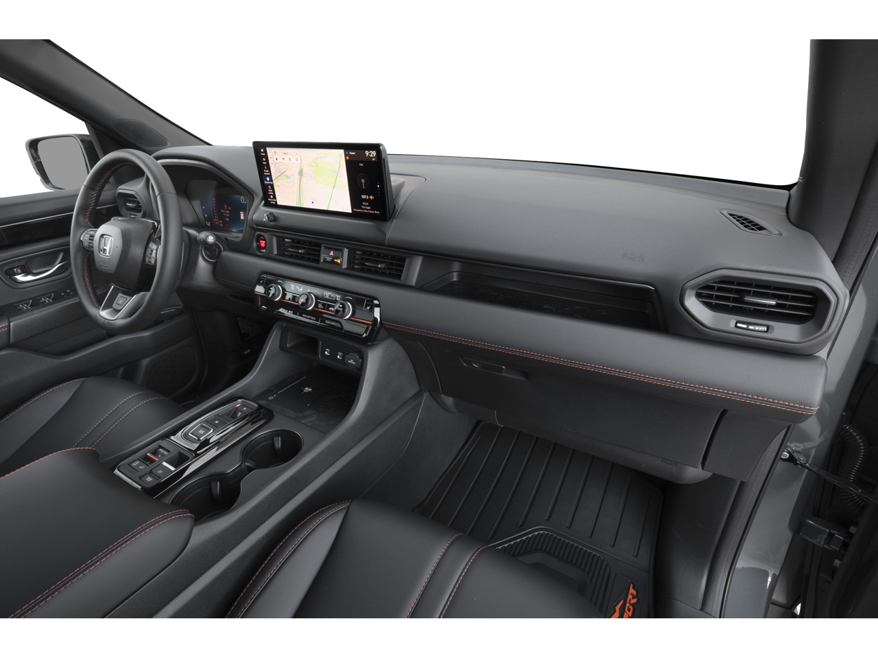 3rd row seats: split-bench, 4-Wheel Disc Brakes, 9 Speakers, ABS brakes, Adaptive Cruise Control: Adaptive Cruise Control (ACC) with Low-Speed Follow, Air Conditioning, Alloy wheels, Apple CarPlay/Android Auto, Auto High-beam Headlights, Auto-dimming Rear-View mirror, Automatic temperature control, Blind Spot Information (BSI) System warning, Brake assist, Bumpers: body-color, Compass, Delay-off headlights, Driver door bin, Driver vanity mirror, Dual front impact airbags, Dual front side impact airbags, Durable Synthetic Leather Seat Trim, Electronic Stability Control, Emergency communication system: HondaLink, Exterior Parking Camera Rear, Four wheel independent suspension, Front anti-roll bar, Front Bucket Seats, Front Center Armrest, Front dual zone A/C, Front fog lights, Front reading lights, Fully automatic headlights, Garage door transmitter: HomeLink, Heated door mirrors, Heated Front Bucket Seats, Heated front seats, Heated rear seats, Heated steering wheel, HondaLink, HondaLink Subscription Services, Illuminated entry, Knee airbag, Lane departure: Lane Keeping Assist System (LKAS) active, Low tire pressure warning, Memory seat, Navigation system: Google Maps, Occupant sensing airbag, Outside temperature display, Overhead airbag, Overhead console, Panic alarm, Passenger door bin, Passenger vanity mirror, Power door mirrors, Power driver seat, Power Liftgate, Power moonroof, Power passenger seat, Power steering, Power windows, Radio data system, Radio: 245-Watt Audio System, Rear air conditioning, Rear anti-roll bar, Rear reading lights, Rear window defroster, Rear window wiper, Reclining 3rd row seat, Remote keyless entry, Security system, Speed control, Speed-sensing steering, Speed-Sensitive Wipers, Split folding rear seat, Spoiler, Steering wheel mounted audio controls, Tachometer, Telescoping steering wheel, Tilt steering wheel, Traction control, Trip computer, Turn signal indicator mirrors, Variably intermittent wipers, and Wheels: 18 Shark Gray with Black Lug Nuts.